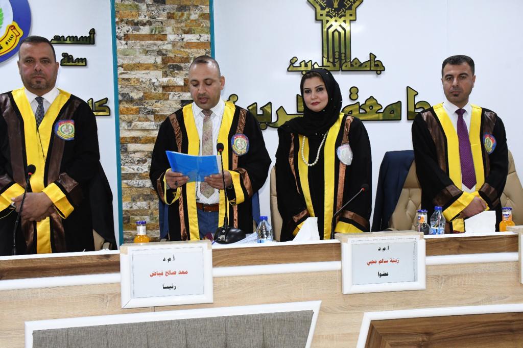 شاركت أ.م.د. زينة سالم محيي التدريسية في قسم العلوم التربوية والنفسية في مناقشة رسالة الماجستير الموسومة “أثر إنموذج كلارك وستار في اكتساب المفاهيم التاريخية عند طلاب الصف الرابع الادبي وتنمية تفكيرهم الترابطي” للطالب أسعد هاشم طه عطية العزاوي من كلية التربية للعلوم الانسانية / جامعة تكريت وذلك في يوم الثلاثاء الموافق 30/11/2021 ، على قاعة عبد الله بن المبارك في رحاب جامعة تكريت .