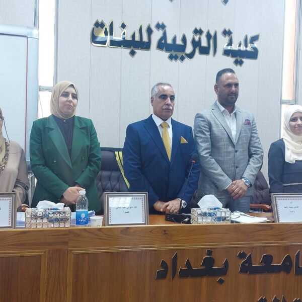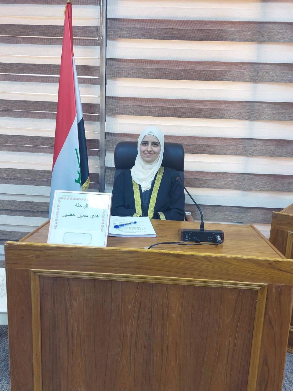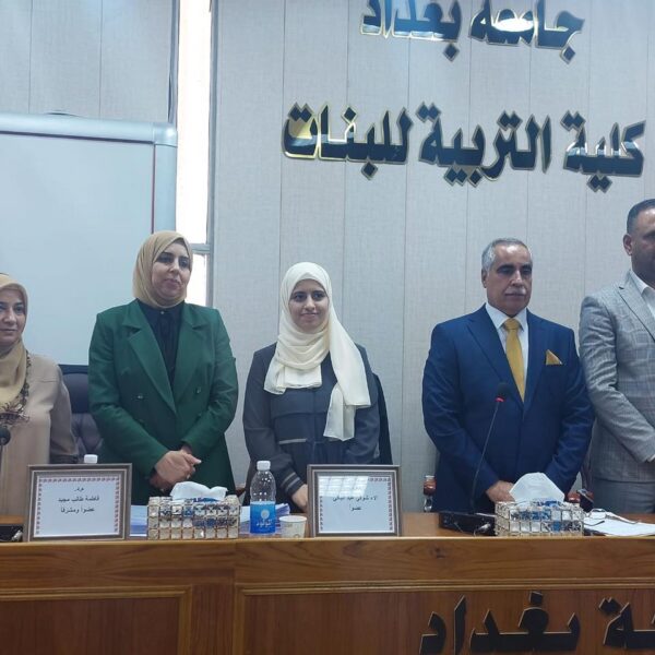 جرت بعون الله تعالى المناقشة العلنية لطالبة الماجستير هدى سمير خضير من قسم علوم القرآن عن رسالتها الموسومة (الجهود التفسيرية للإمام الآجُرِّي(ت:360هـ) في كتابه (الشريعة) جمعاً ودراسة في يوم الثلاثاء الموافق ٢٨/6/2022 على قاعة المناقشات في رحاب كلية التربية للبنات / جامعة بغداد .