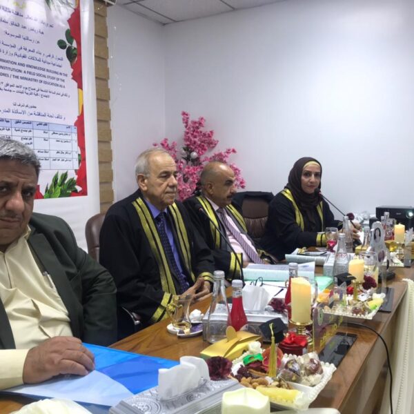 بحضور السيد رئيس جامعة بغداد وعدد من مدراء عامين من وزارة التربية … جرت – بعون الله تعالى – المناقشة العلنية لطالبة الماجستير ( هبة رياض عبد الخالق) من قسم الاجتماع عن رسالتها الموسومة :(التحول الرقمي و بناء المعرفة في المؤسسة التربوية:دراسة اجتماعية ميدانية للملاكات القيادية/ وزارة التربيةانموذجا) في يوم الاحد الموافق 3/7/2022 في قاعة قسم الاجتماع في رحاب كلية التربية للبنات/ جامعة بغداد .