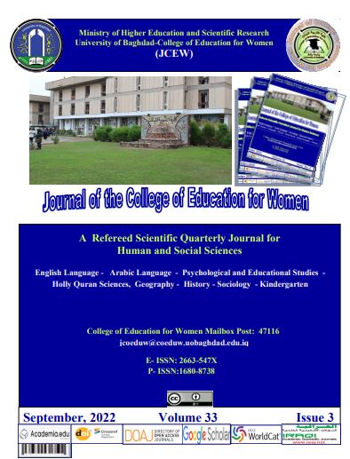 بعون من الله وتوفيقه صدر العدد الثالث من المجلد (33) من (( مجلة كلية التربية للبنات )) فبسواعد هيأة تحرير المجلة وبرعاية السيدة عميد كلية التربية للبنات إ.م.د. اثمار شاكر مجيد الشطري..وبإشراف معاون العميد للشؤون العلمية والدراسات العليا أ.د.هند عباس علي صدر عدد جديد من مجلة كلية التربية للبنات ، وهي مجلة علمية محكمة مختصة بالعلوم الإنسانية والإجتماعية .