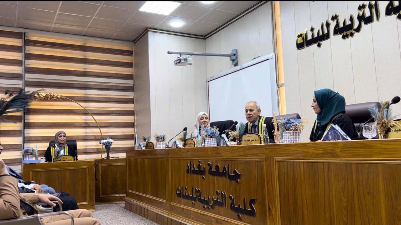 جرت -بعون الله-المناقشة العلنية لطالبة الماجستير (رغد حسن شجر) من قسم الاجتماع عن رسالتها الموسومة ب: (اللامركزية وتحديات العمل الاجتماعي في العراق /دراسة ميدانية في المؤسسات الرسمية ) في يوم الخميس 29/9/2022 في تمام الساعة التاسعة صباحا في قاعة المناقشات في رحاب كلية التربية للبنات