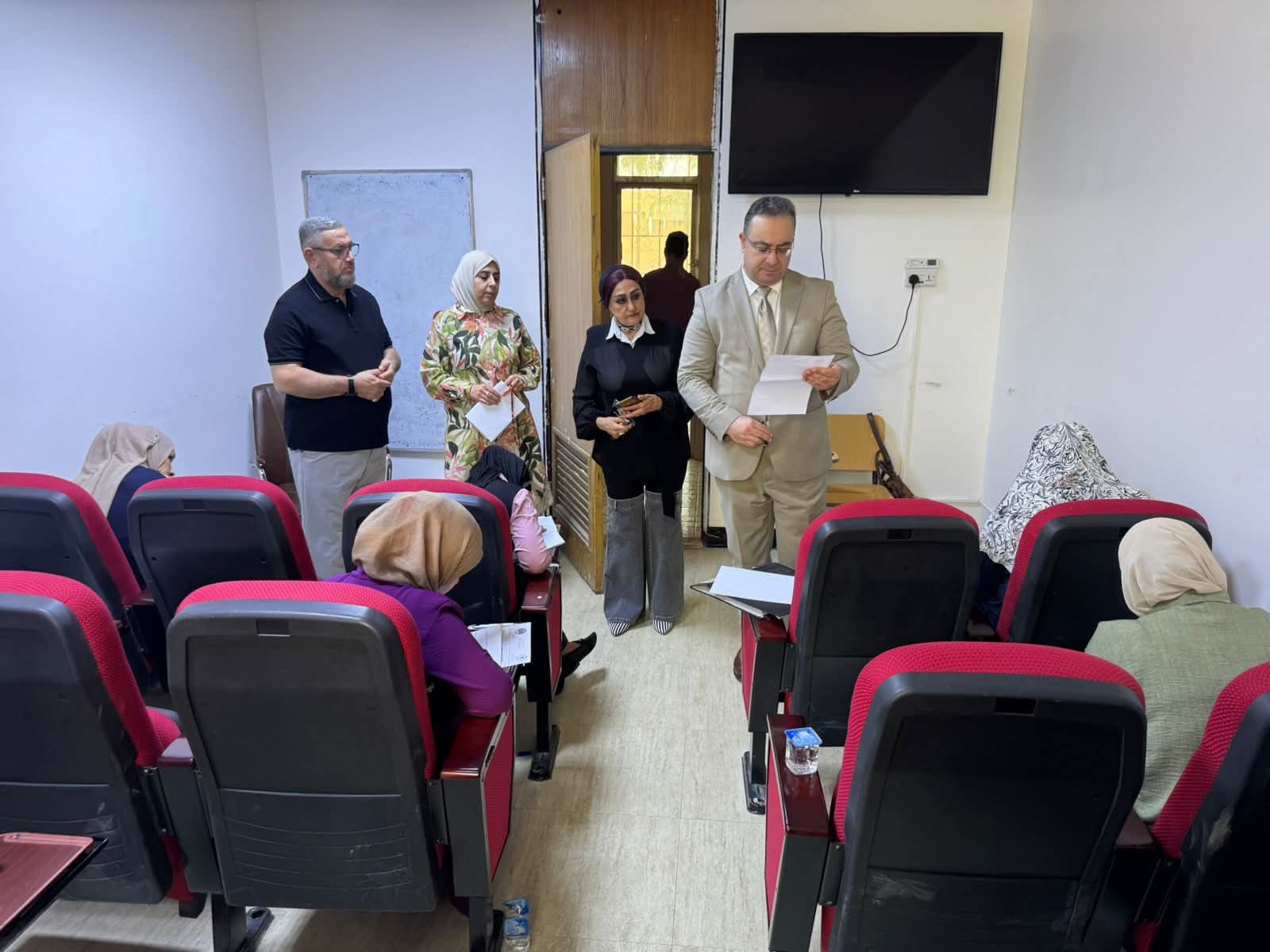 جانب من زيارة مدير قسم شؤون الدراسات العُليا في جامعة بغداد الاستاذ الدكتور حسين قاسم حسين،صباح يوم الاربعاء الموافق ٢٠٢٥/٦/١٨ ،برققة السيدة معاونة العميدة للشؤون العلمية الاستاذة الدكتورة انعام داود سلوم،ومديرة شعبة الدراسات العُليا الاستاذة المساعدة الدكتورة أسماء ضياء الدين، للاطلاع على سير الامتحانات النهائية للدراسات العليا للعام الدراسي ٢٠٢٤-٢٠٢٥،وتفقد اللجان الامتحانية لعدد من أقسام الكلية