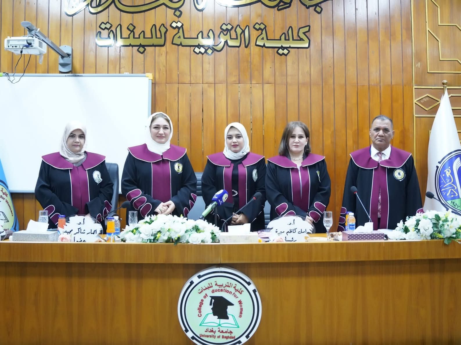 جرت بعون الله تعالى المناقشة العلنية لطالبةِ الماجستير ( جنة إسماعيل غضيب) في قسم العلوم التربوية والنفسية عن رسالتها الموسومة ب:(( التعقل النفسي وعلاقته بتوسيع الذات لدى طلبة الجامعة)) في تمام الساعة التاسعة من صباح يوم الاثنين الموافق (25/8/2025) وعلى قاعة المصطفى في رحاب كلية التربية للبنات ،وقد تألفت لجنة المناقشة من الأساتيذ الأفاضل: