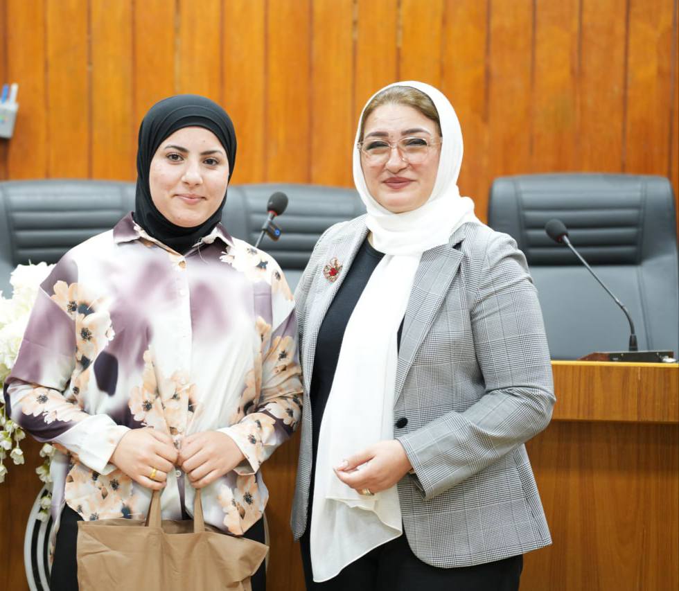 كرّمت السيدة عميدة كلية التربية للبنات ومديرة مركز دراسات المرأة في جامعة بغداد، الأستاذة الدكتورة إثمار شاكر مجيد الشطري المحترمة، مجموعةً من ذوات الهمم العالية تقديرًا لجهودهن وإنجازاتهن، لما جسّدنَه من إرادةٍ وعزيمةٍ في مسيرتهن الدراسية والحياتية. بحضور السيد معاون العميد للشؤون الإدارية ا.د احمد هاشم، ونُخبة من رؤوساء الاقسام العلمية، واساتذة،وطالبات الكلية.