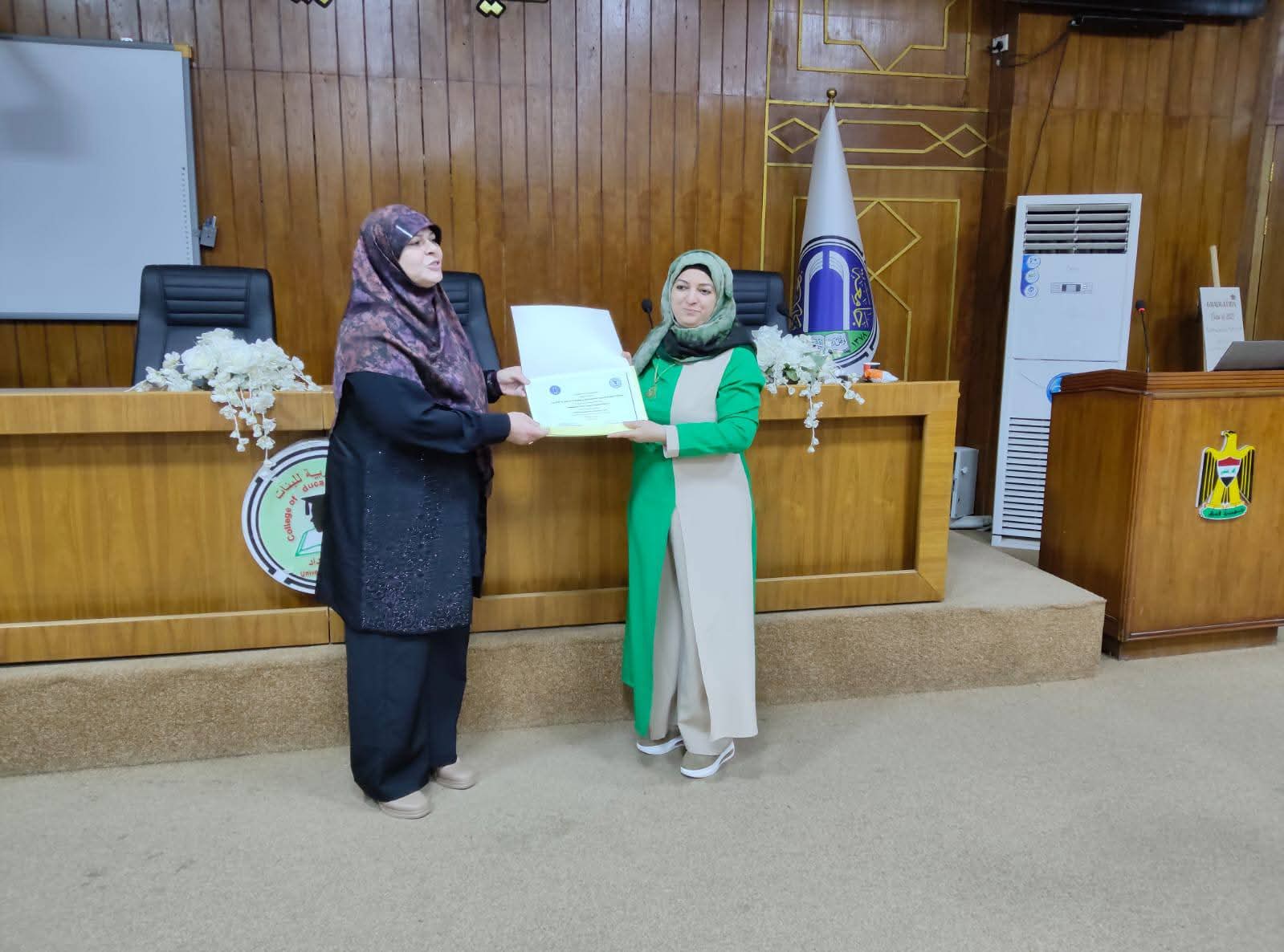برعاية السيدة عميدة كلية التربية للبنات الأستاذة الدكتورة اثمار شاكر مجيد الشطري المحترمة، أقام قسم اللغة الإنكليزية في الكلية ندوته العلمية الموسومة بـ “علم اللغة وأهداف التنمية المستدامة”، وذلك في تمام الساعة التاسعة من صباح يوم الاثنين الموافق 20/10/2025، بمشاركة نُخبة من أستاذات القسم في الكلية، وعدد من استاذات الجامعات العراقية الأخرى.
