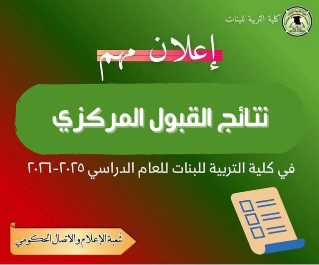 كلية التربية للبنات تُعلن نتائج القبول المركزي للعام الدراسي ٢٠٢٥-٢٠٢٦،