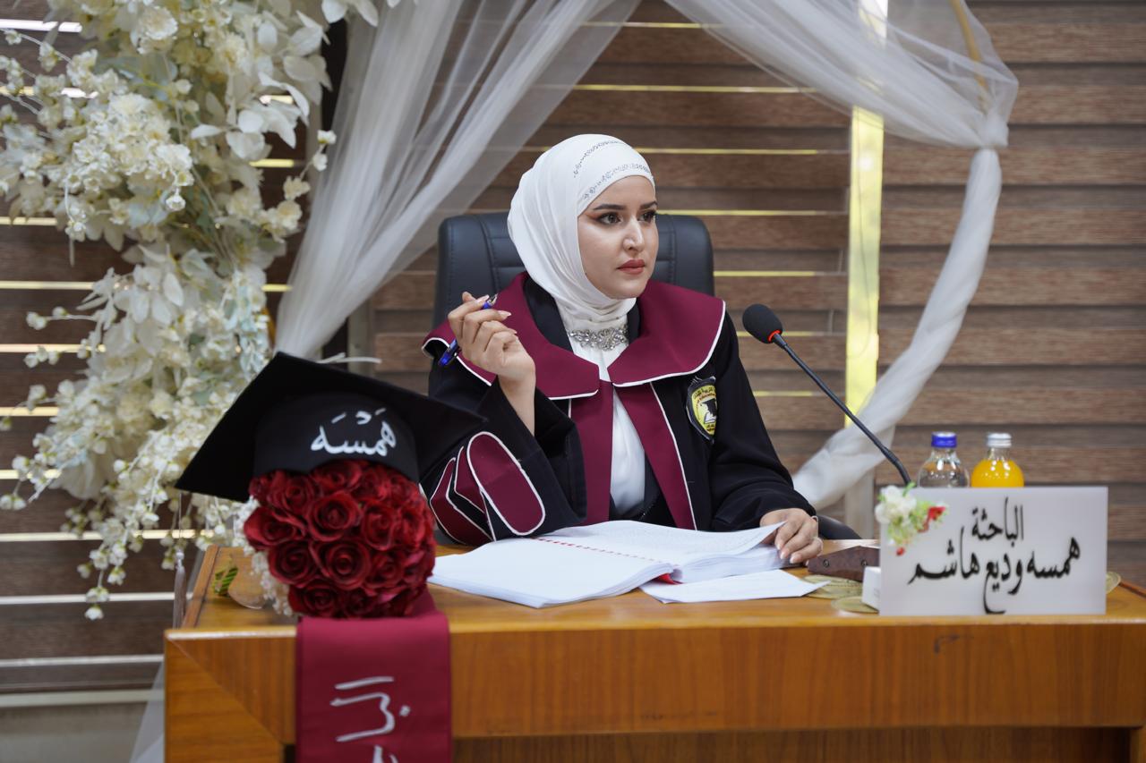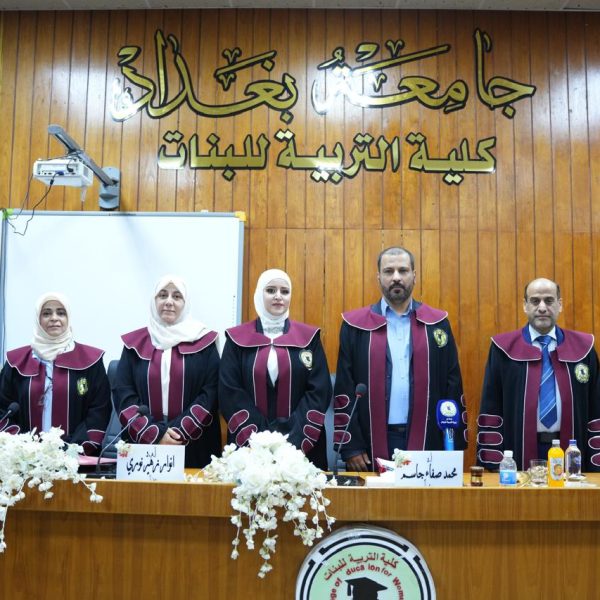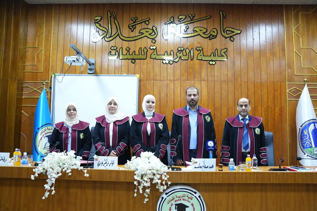جرت بعون الله تعالى المناقشة العلنية لطالبة الماجستير (همسة وديع هاشم) عن رسالتها الموسومة:(الحضارة الغربية في فكر الدكتور عماد الدين خليل)في تمام الساعة التاسعة من صباح يوم الأحد الموافق ١٦ تشرين الثاني ٢٠٢٥، وعلى قاعة المصطفى في كلية التربية للبنات – جامعة بغداد .وقدتألّفت لجنة المناقشة من الأساتيذ الأفاضل، كل من :