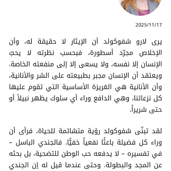 🔹ويخلص المقال إلى أن السلوك الإيثاري يمثل قيمة اجتماعية وأخلاقية ينبغي تعزيزها في نفوس الطلبة والأبناء، لِما له من أثر في بناء الفرد والمجتمع•••