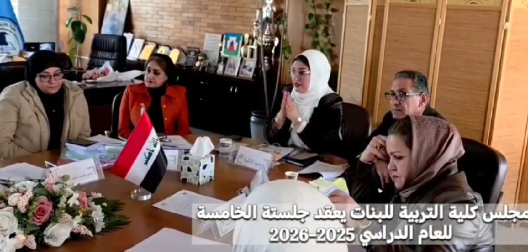 عقد مجلس كلية التربية للبنات في جامعة بغداد جلسته الخامسة للعام الدراسي 2025–2026، برئاسة السيدة عميدة الكلية الأستاذة الدكتورة اثمار شاكر مجيد الشطري المحترمة، وذلك في تمام الساعة الحادية عشرة من صباح يوم الثلاثاء الموافق 17 كانون الأول 2025.