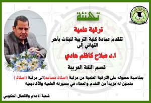 • تـرقية عـلمية 📚 إلى / ا.د صلاح كاظم هادي المحترم